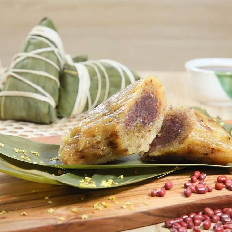 Handmade, soft, sweet, healthy and delicious. The sweet alkaline rice dumplings are full of the aroma of osmanthus and red beans, and taste delicious. Every bite is filled with glutinous rice, osmanthus and fresh red bean fillings, full of sweet, soft and glutinous taste. Ingredients: glutinous rice, red beans, sugar, alkaline water, osmanthus. How to eat: steam or heat in hot water for 15 minutes. Storage: refrigerate for 30 days, freeze for 90 days