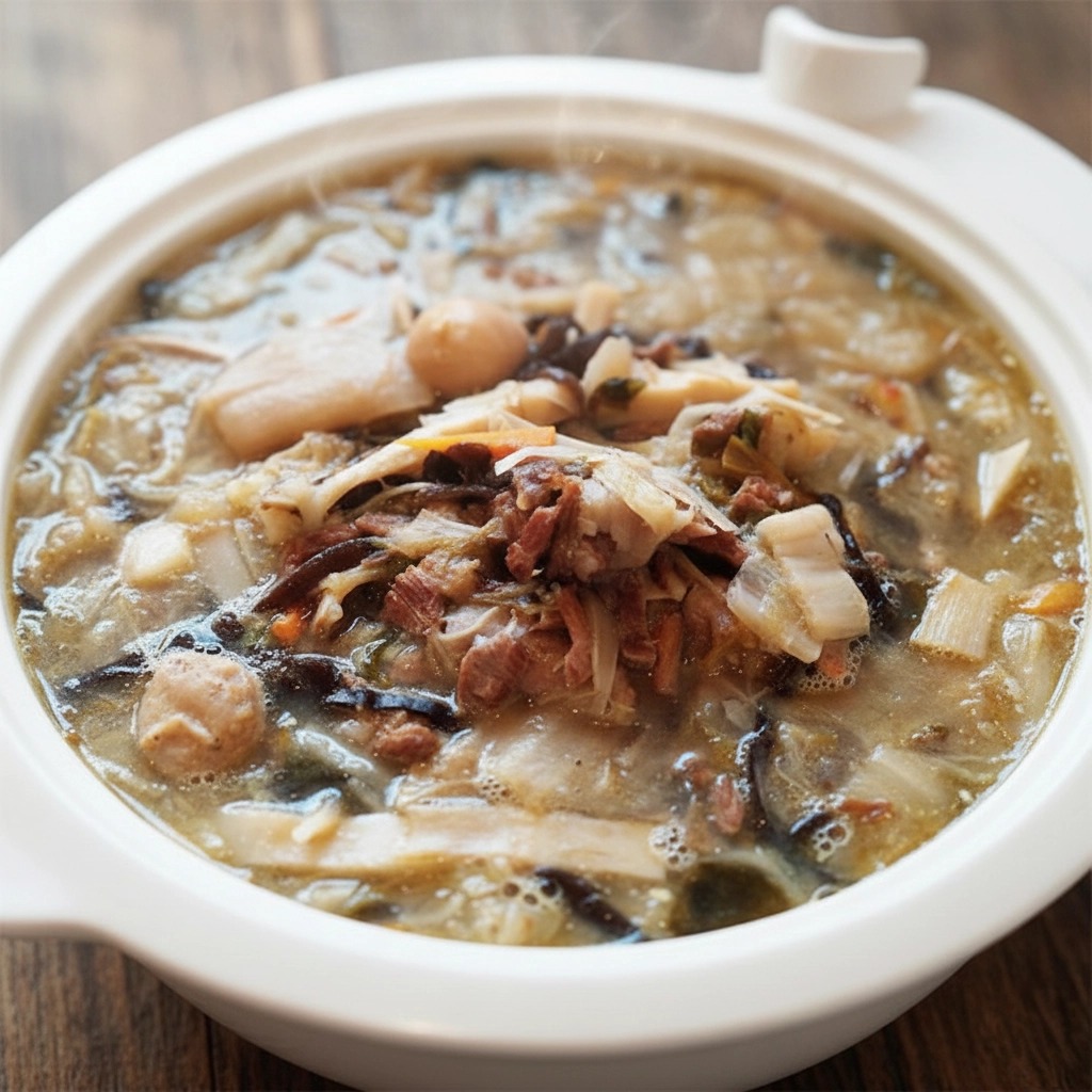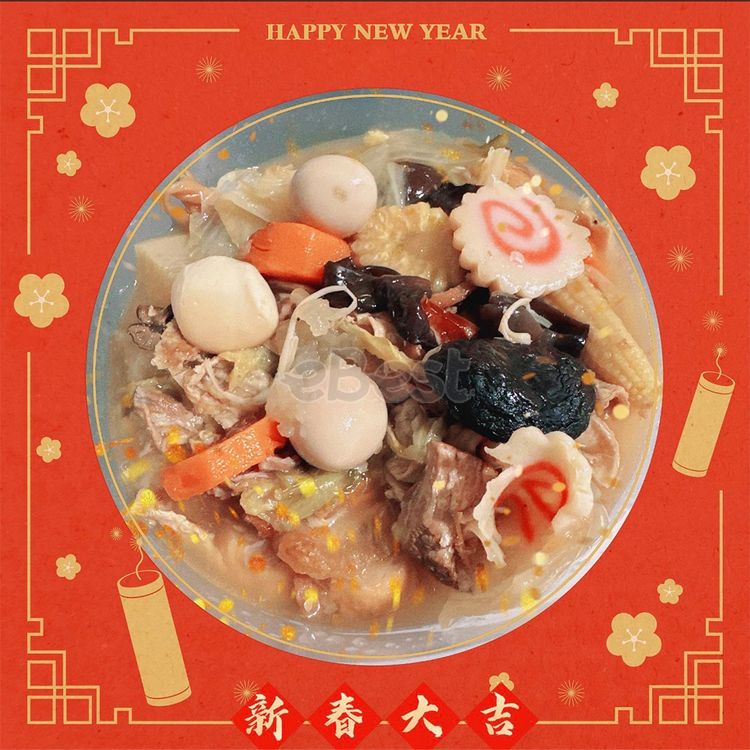 Storage method: Frozen storage for 180 days. Product ingredients: Flatfish, shiitake mushrooms, enoki mushrooms, dried shrimp, white radish, bean curd sheets, quail eggs, pork ribs, meatballs, bamboo shoots, wood ear fungus, and Chinese cabbage. Cooking method: Electric rice cooker: After completely thawing, pour into a container, add water to dilute (about 100cc), add 2 cups of water to the outer pot, and steam until thoroughly heated. Gas stove: After thawing, pour into a pot, add water to dilute (about 100cc), heat over low heat and stir to prevent sticking. Taiwanese vegetable soup (mixed vegetable soup) originates from the traditional dish of gathering leftover dishes after a banquet and cooking them together. Its characteristic is the fusion of various ingredients, such as pork belly, flatfish, winter shrimp, squid, bonito flakes, shiitake mushrooms, cordyceps mushrooms, wood ear fungus, straw mushrooms, white radish, carrot, Chinese cabbage, snow fish balls, meatballs, pickled cabbage, and dried bamboo shoots, resulting in a rich, delicious, and nostalgic flavor.