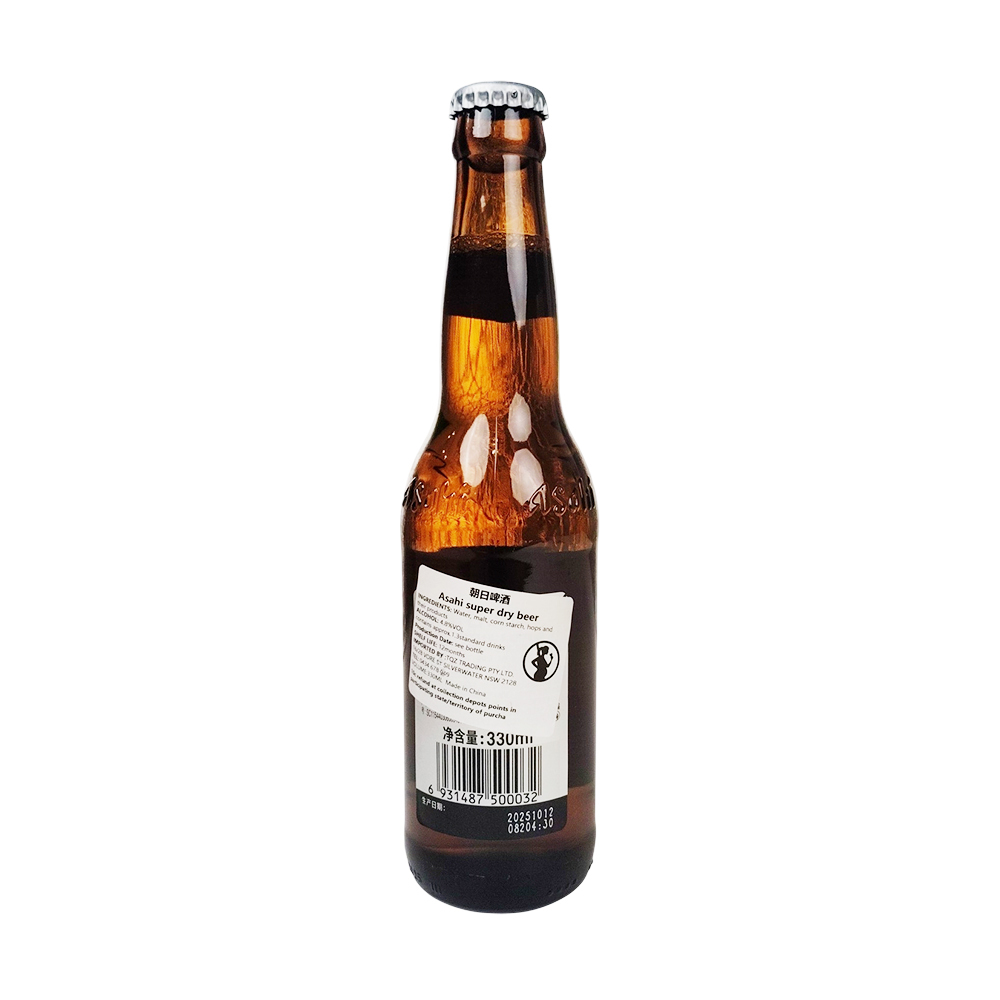 Asahi beer from Japan is a pure, dry, and crisp drink with a clean, spicy flavor. Each 330ml bottle contains 4.8% alcohol and has an original gravity of 10.9°P. Made with carefully selected malt, hops, and other ingredients, and fermented with a proprietary yeast, the beer is clear and golden with a rich, creamy head. It has a dry, crisp taste and a clean, light finish, making it perfect for Japanese cuisine, barbecues, and gatherings with friends. It tastes even better chilled.