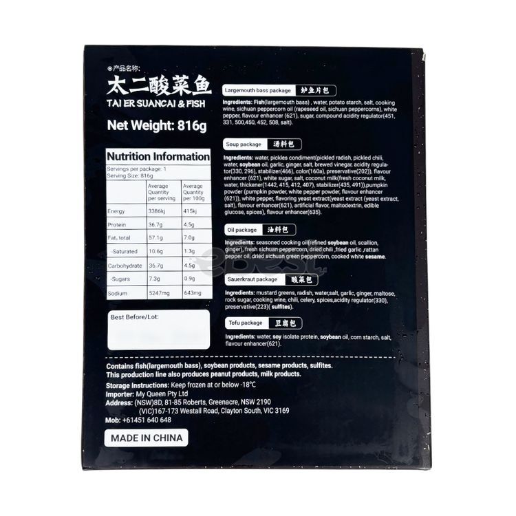 Tai'er Boxed Sauerkraut Fish Single Serving Perch Version 816g
