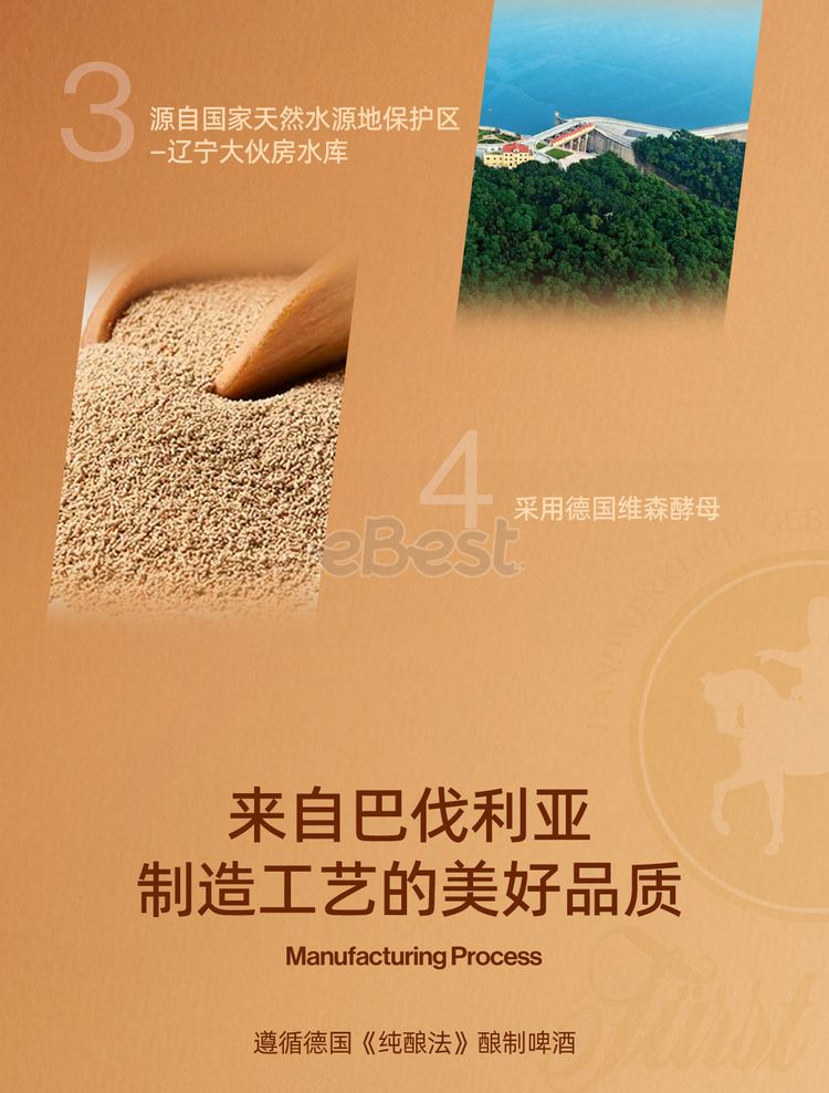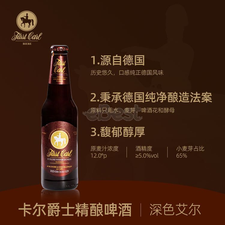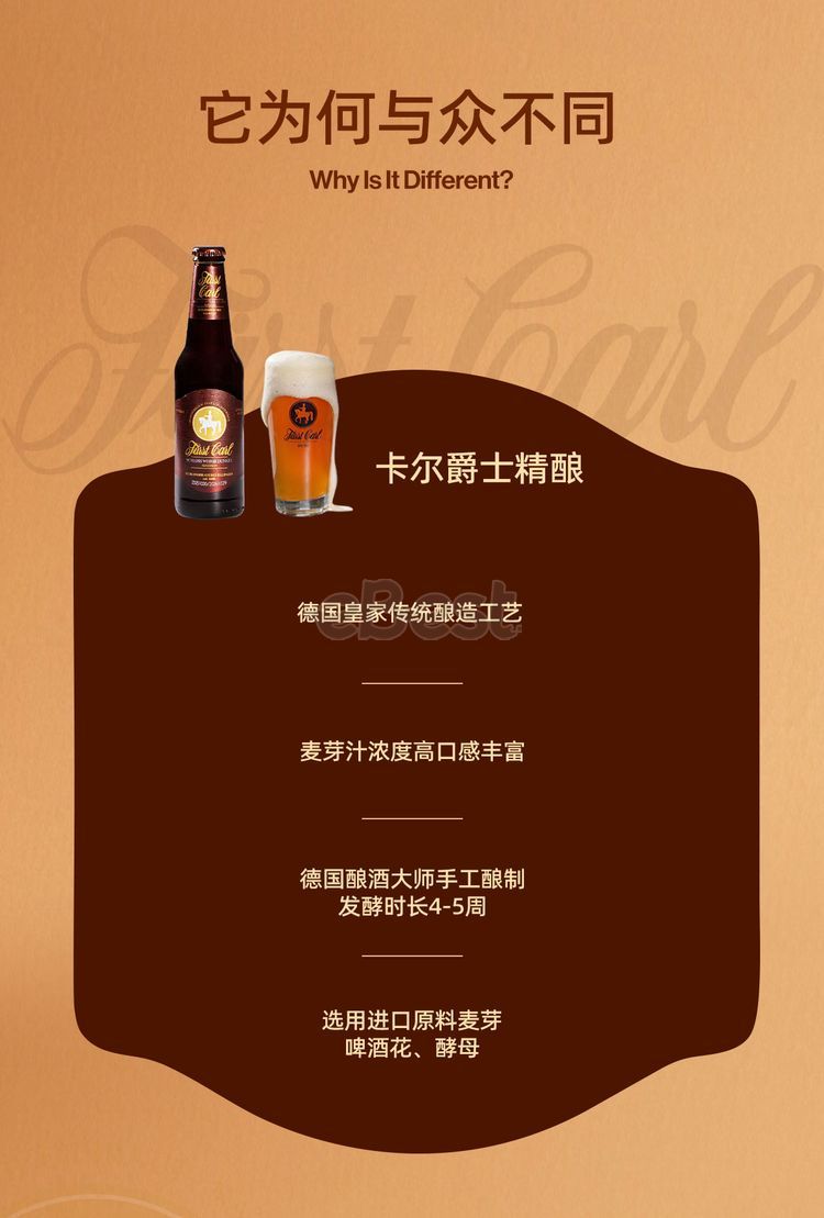 Sir Carl's Craft Beer is brewed using traditional German royal brewing techniques. It features a high concentration of malt extract and a rich flavor. It is handcrafted by German brewing masters and fermented for 4-5 weeks, using imported raw materials such as malt, hops, and yeast.