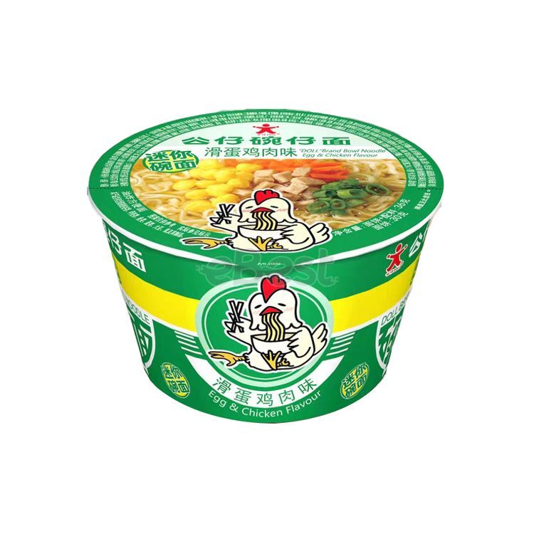 Classic Hong Kong-style mini bowl noodles, featuring tender and flavorful scrambled eggs and chicken, a clear and mellow broth, and chewy noodles. A small bowl, ready to eat after adding hot water, perfect for a late-night snack, a light meal, or a quick bite at the office – convenient and delicious.