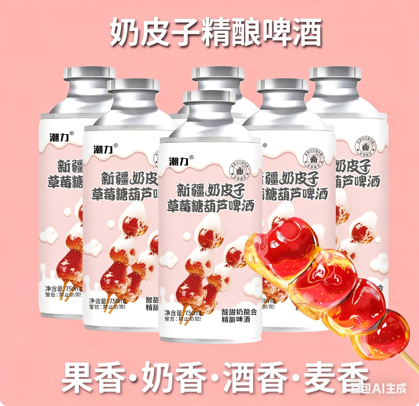 Rich and creamy with a pleasantly sweet and sour taste, this drink features Xinjiang-style milk skin paired with strawberry candied hawthorn flavor. It has an alcohol content of 4.1% and comes in a 750ml bottle. The taste is rich and layered.