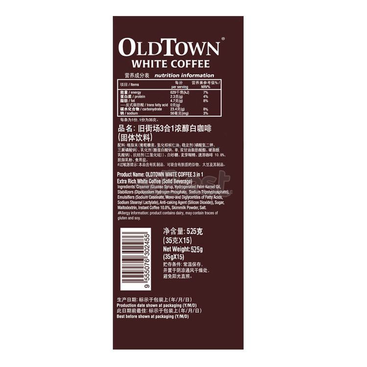 Old Street White Coffee 3-in-1 Extra Strong Flavor 525g (15 Sachets)