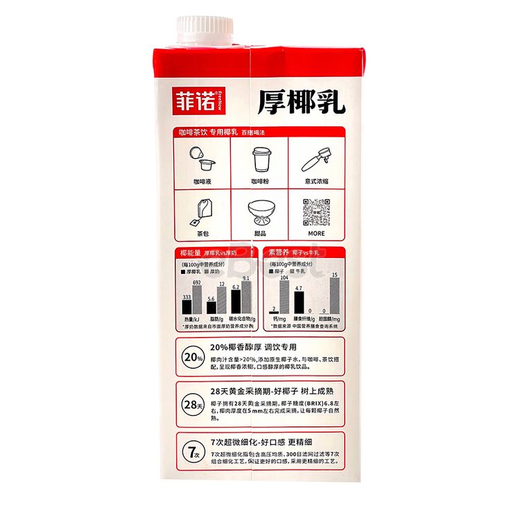 Fino Thick Coconut Milk, thick coconut milk for tea/coffee. Pure taste, rich coconut fragrance, diy raw coconut latte, replica milk tea coffee, special coconut milk for tea and coffee desserts! Own coconut grove, limited origin, exclusive variety, quality assurance. Fresh coconut meat + coconut water is mixed to squeeze juice, the raw materials are directly collected in the special area, and the product is highly stable. Raw coconut latte, raw coconut coconut jelly, coffee coconut milk jelly, coconut coconut fire phoenix jelly, all arranged!