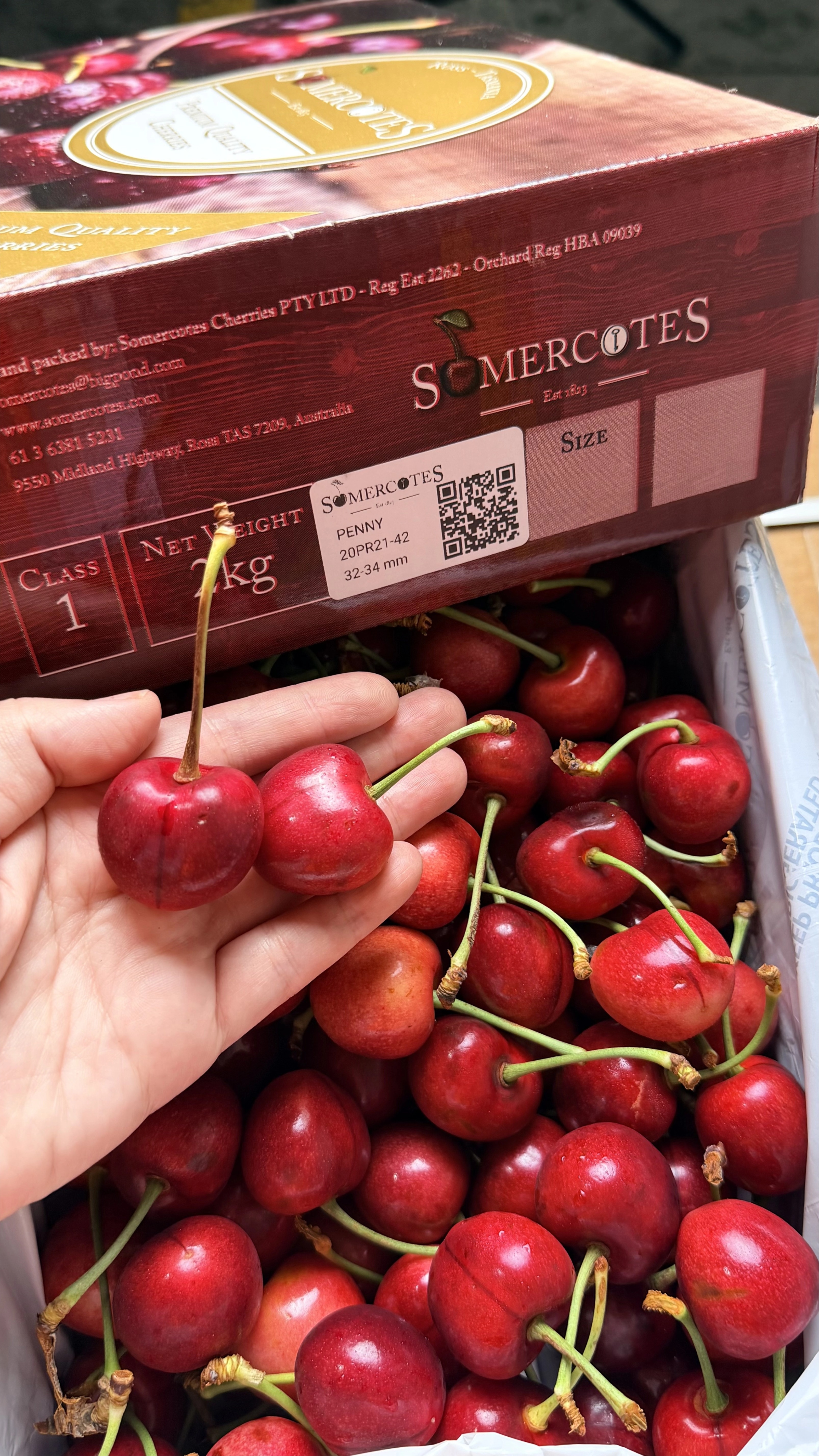 Somercotes Chelan Cherries 32-34mm - 2kg Gift Box